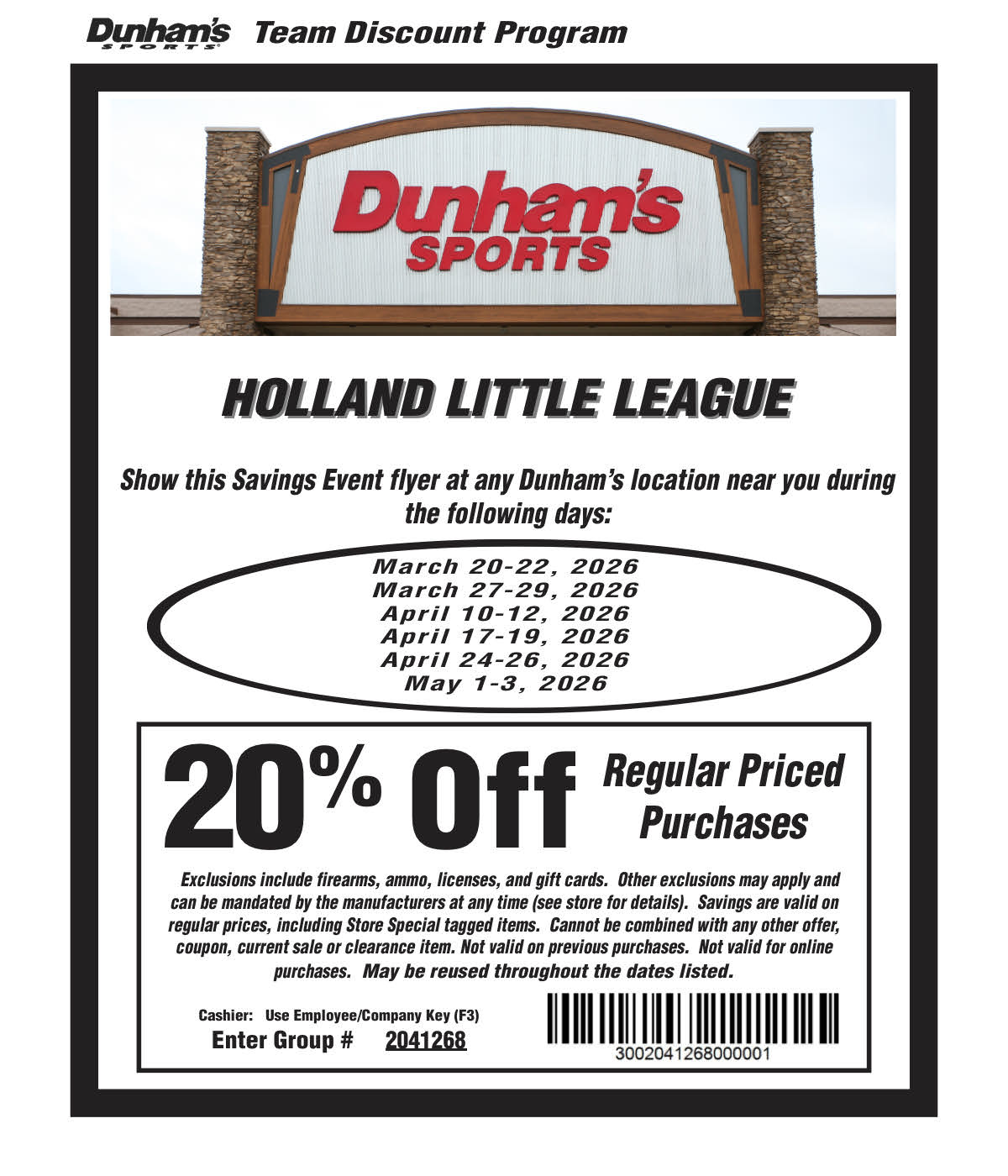 Holland Little League 20% OFF SHOP EVENT